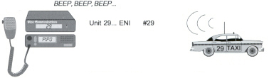 EXAMPLE 2: ENI In an EMERGENCY or ALERT, a hidden button is pushed, the AE-1 sends an ENI, indentifying the unit (29). This activates the dispatcher’s AUDIO ALARM with a continuous beep and a flashing display. To silence, the operator must manually reset. |