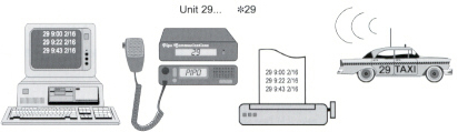 EXAMPLE 1: ANI Each time the radio transmits, the AE-1 sends the unit number (29) to the dispatcher, automatically identifying the unit on the dispatcher’s display, the PD-822. |